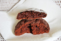 In un pentolino sciogliere 220gr di cioccolato fondente insieme a 120gr di burro. Sbattere 2 uova con 100gr di zucchero e unire il cioccolato fuso che, nel frattempo, abbiamo fatto intiepidire. Amalgamare il composto, aggiungere 220gr di farina, mezzo cucchiaino di lievito, un pizzico di sale e mescolare tutti gli ingredienti fino ad ottenere un impasto omogeneo. Mettere l'impasto in frigo per 30 minuti. Con l'impasto indurito, formare tante piccole palline, schiacciarle e disporle su una teglia ricoperta con carta forno. Mettere in forno a 180° per 10 minuti e spolverizzare con zucchero a velo.